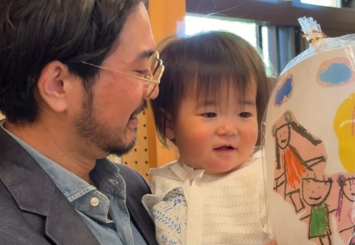 手作りのプレゼントをもらった新入園児